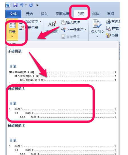 word2010自动生成目录怎么弄