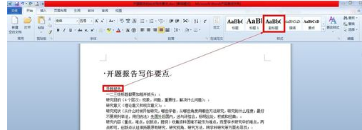打开一个已经编辑好的文档,给文档的各级标题添加”标题样式“,首先添加”一级标题“。
