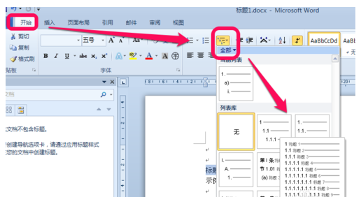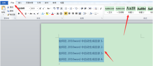 步骤2:点击开始菜单,选中标题内容,设置标题内容的格式,如标题1