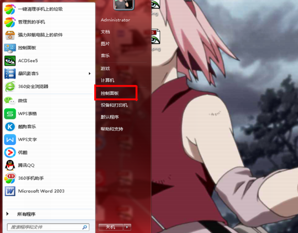 2、点击控制面板;