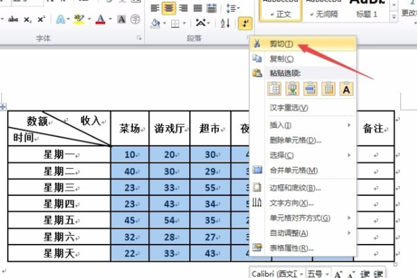二、然后,选中表格中要清除的内容,点击右键,在右键菜单中选择“剪切”,点击打开。
