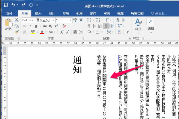 5、确定之后回到word中就可以看到修改成横排的2018。