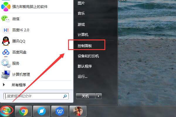 1、在“开始”菜单中单击并打开“控制面板” 。