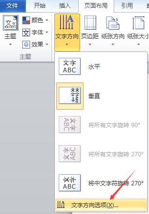 1、选择“页面布局”-“文字方向”-“文字方向选项”按钮进行文字排列设置,如图所示:
