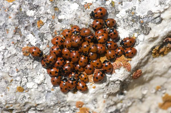 各种瓢虫的冬眠是相当普遍的。它们在家庭,树皮或落叶中大量休眠。他们聚集在一起休眠。这使它们保持温暖,并有助于在冬眠期间抵御掠食者。