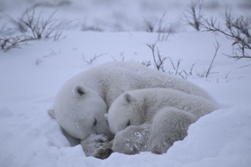 一般说来北极熊在每年的3.5月非常活跃为了觅食辗转奔波于浮冰区,过着水陆两栖的生活。在严冬北极熊外出活动大大减少,几乎可以长时间不吃东西,此时它们寻找避风的地方卧地而睡。呼吸频率降低进入局部冬眠。