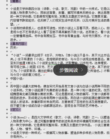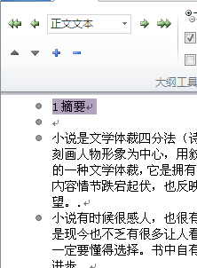 2 点击【大纲视图】,将会出现需要编辑的文档,然后按住【Ctrl】键逐一选择每项内容的标题。