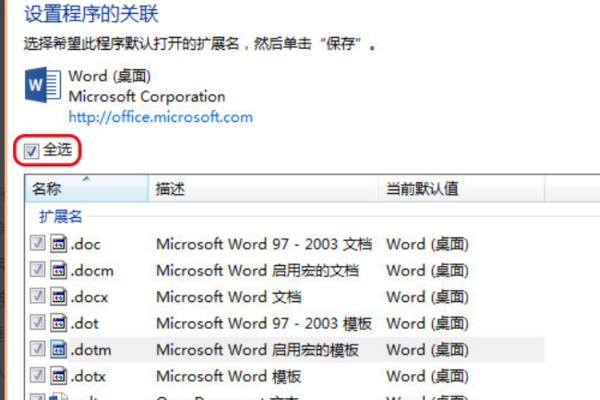五、最后、设置程序默认的关联文件即可将Word设置为默认程序,问题解决。