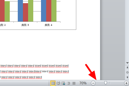 2、然后我们在Word文档页面右下角找到下图中带有百分比的拖动条。