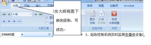 2、打开“大纲视图”,在大纲视图中,找到对应的文字然后修改,大纲级别;