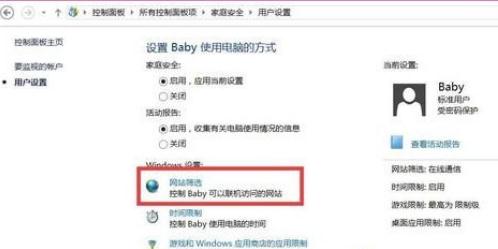 3、可以就当前用户设置限制策略,以设置“访问网络”参数为例,点击“网络过滤”;