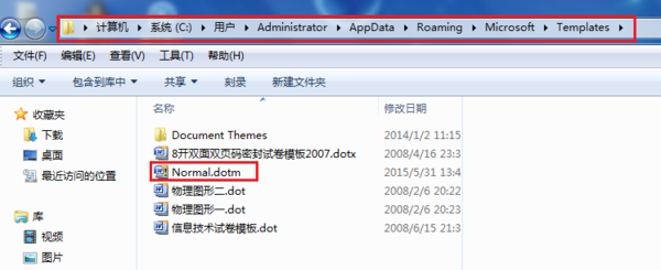 2、上边红框中表示的是具体路径,下边是word 2007 所用的模板“Normal dotm"。