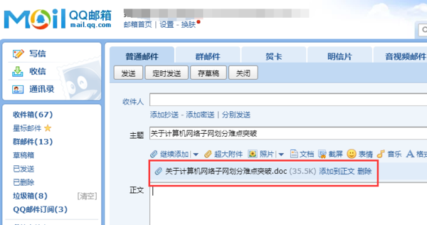 怎样把word文件发到QQ邮箱