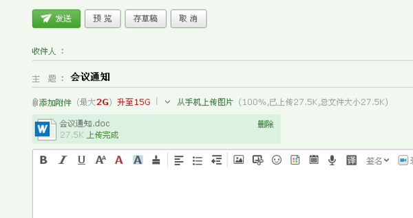 3,点击“添加附件”,添加自己的word文档,点击发送即可。