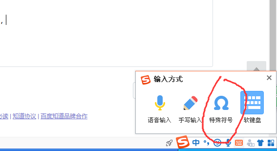 (1)将搜狗输入法切换到中文输入状态,点击“特殊符号”选项;