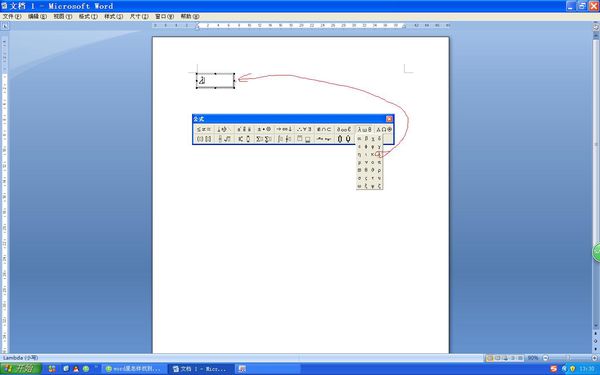插入----对象-----对象-----新建----对象类型-----公式3.0-----确定。打开了公式编辑器,找到“希腊字母(小写)”就找到拉姆达那个字母了。word2007