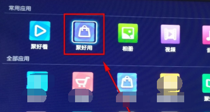 2.这时,我们会看到这么一个页面,页面上显示了当前电视已经安装的所有应用app,在页面中选择聚好用。