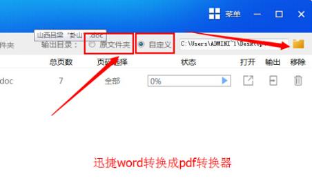 第四步:Excel转word后我们想要将其储存在什么地方?在软件中的输出目录下可以自行设置转换后文件的储存位置,储存在原文件夹中或是自定义文件夹中皆可。