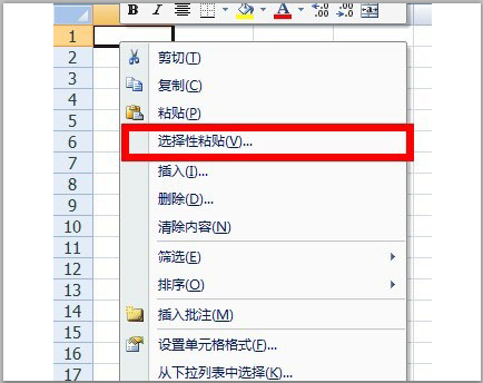 编辑→选择性粘贴