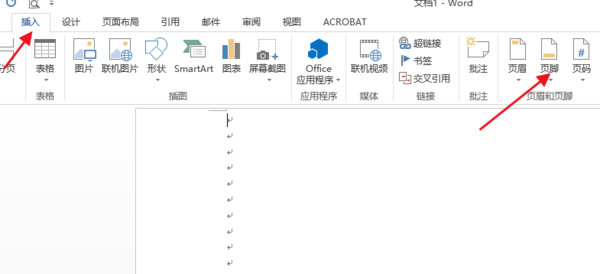1、打开word文档,在顶部工具栏中选择插入中的页脚。
