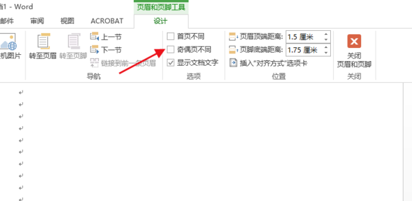 ⑦、重新编辑不同方向页面的页眉页脚:竖版文档中的横版页面的页眉将默认在长边,而竖版页面的页眉在短边,这就需要进行调整。