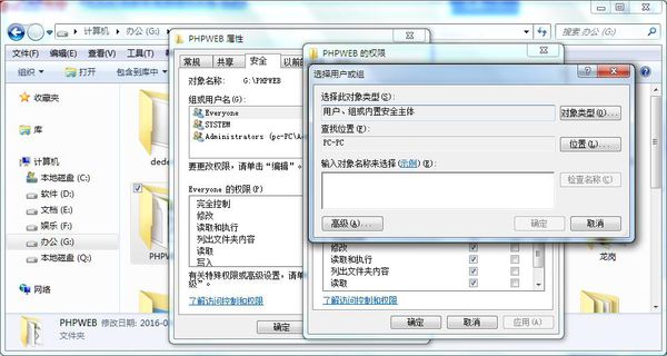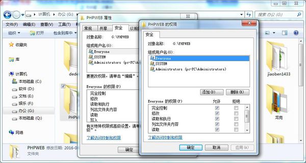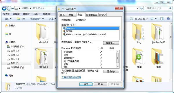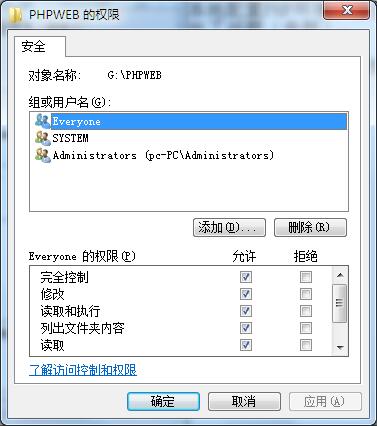 1、右击PHPWEB文件夹->属性->安全,点击编辑