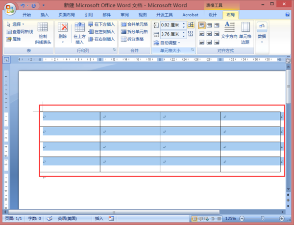 2、点击分布行图标后,查看word文档表格,如下图所示,统一表格高度完成。