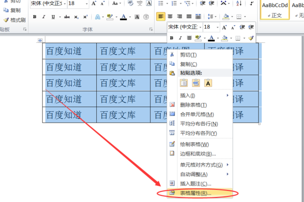 接下来点击鼠标右键,然后从右键菜单中选择“表格属性”选项。