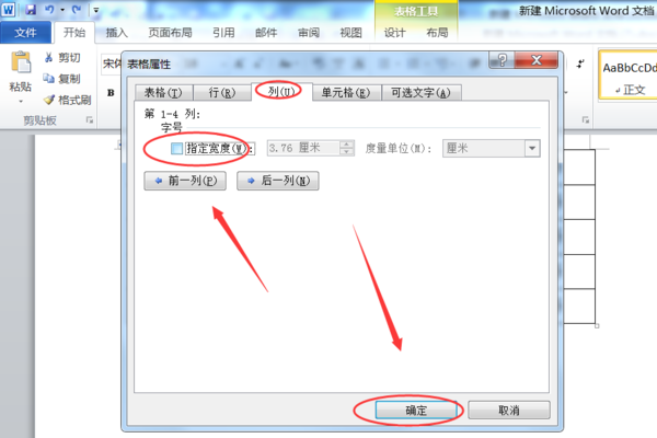 3、在列标签页中同样取消“指定宽度”前面的选勾,然后点击确定按钮即可。