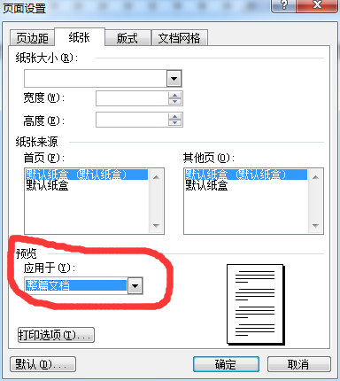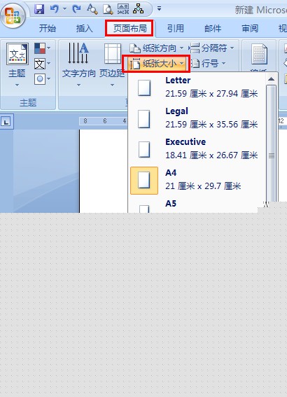 在打开的页面设置中,我们就看到了下面图片所示的下拉菜单选项,可以让我们拥有更多的纸张选择,默认为A4尺寸。