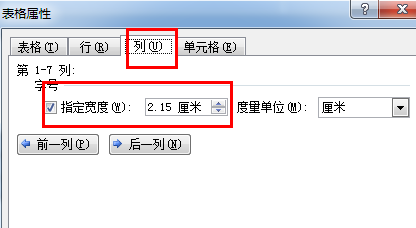 2、在打开的“表格属性”窗口中,切换至“列”选项卡。