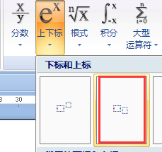 2、进入公式编辑状态,选择下标和上标模板中如图所示的模板;