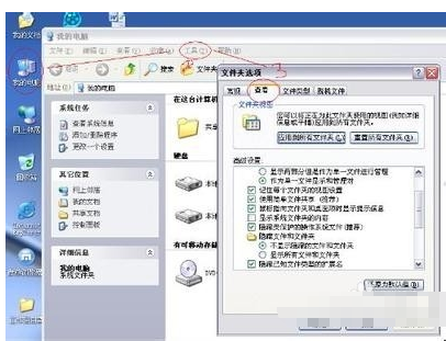打开"我的电脑",如图打开"文件夹选项"管理器.