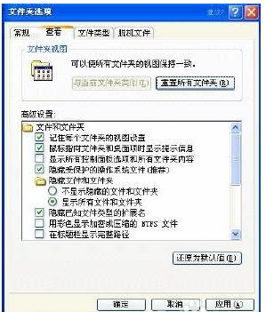 切换到"查看"选项卡,下拉滚动条,选中"显示隐藏的文件,文件夹和驱动器"选项.