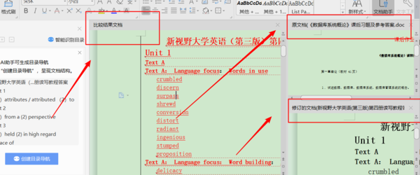 简单快速的比较两个Word文档内容的差异具体步骤: