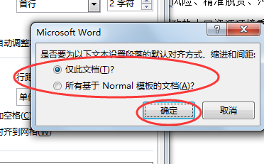 5、在弹出的对话框中,选择“仅此文档”或者“所有normal模板的文档”,点击确定。