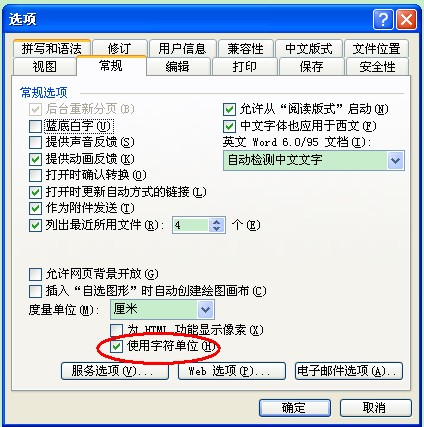 单击菜单“工具----选项----常规”勾选下面“使用字符单位”
