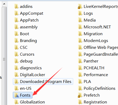 找到fonts文件夹,打开。