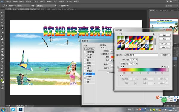 5、点击左边工具栏“T”文字工具,打上需要的广告语,栅格化文字,双击调出“图层样式”,添加文字效果,完成。