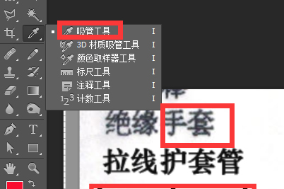 5、点击侧边栏的吸管图标,选择吸管工具吸取图片上文字颜色,将刚才输入的文字颜色改成一致。