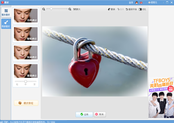 3、消除完后使用普通磨皮进行突破美化,使其看起来更自然;