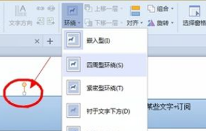 第二步,我们要单击选中“最大”的外框,就是浮在最底层的,导致我们不能修改其他图的那个,如图圈红部分所示,然后我们选择“工具栏”上面的“环绕”中的“四周环绕型”,确定之后,我们只剩最后一步了。