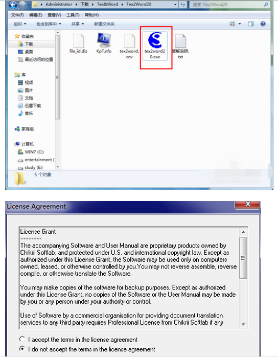 2.加压后,安装“Tex2Word20”,使用默认安装路径。