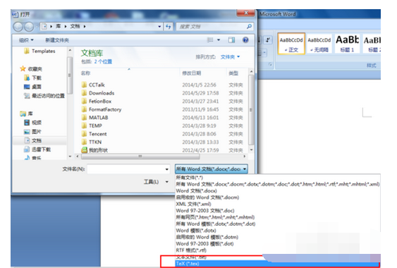 7.打开word文档,“文件”——“打开”,弹出一个对话框,在“文件类型”对话框中选“Tex(*.tex)”,然后找到所需要转化的Tex文件,点“打开”就能转化了。