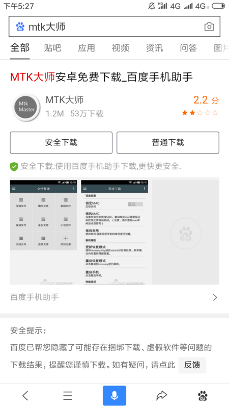 1.进入手机应用商店或手机百度,下载MTK大师。
