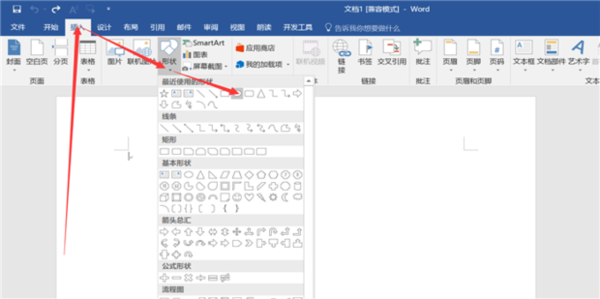 1、打开word文档,在插入菜单中选择“形状”,在下拉形状中选择“椭圆形”。