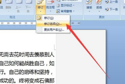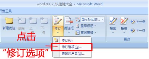 4.在上述下拉菜单中,点击选择“修订选项”,将弹出修订选项设置框,