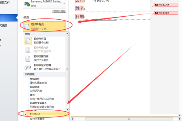 当标记按照您需要的方式出现时,就可以打印文档了。