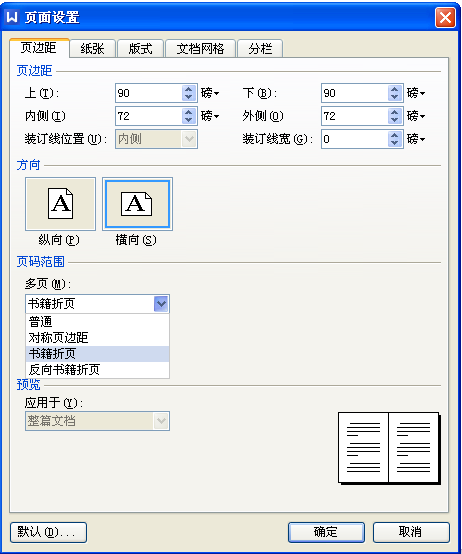(2)在多页处选择书籍折页即可,如图所示。