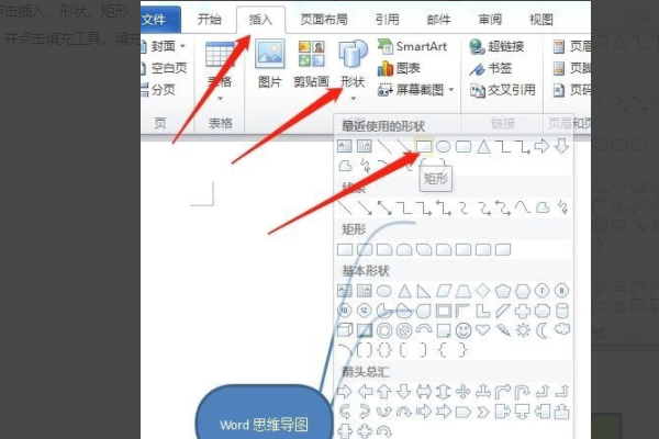 1、首先,打开Word软件,单击“插入”选项卡,单击形状功能,然后单击圆角矩形。